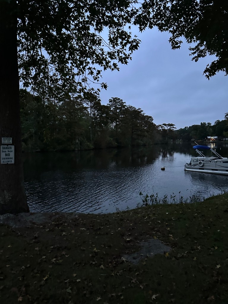 As I have said on this blog before, I need to make this a priority and I am doing better. I got myself out for my walk this morning, even though it was gloomy out and not quite light yet. (See picture below for the creek that runs through our campground.) It made me feel great! It really starts the day off so much better. I was even more proud that I walked about a half mile in 13 minutes. That’s pretty good since my surgery in early July.