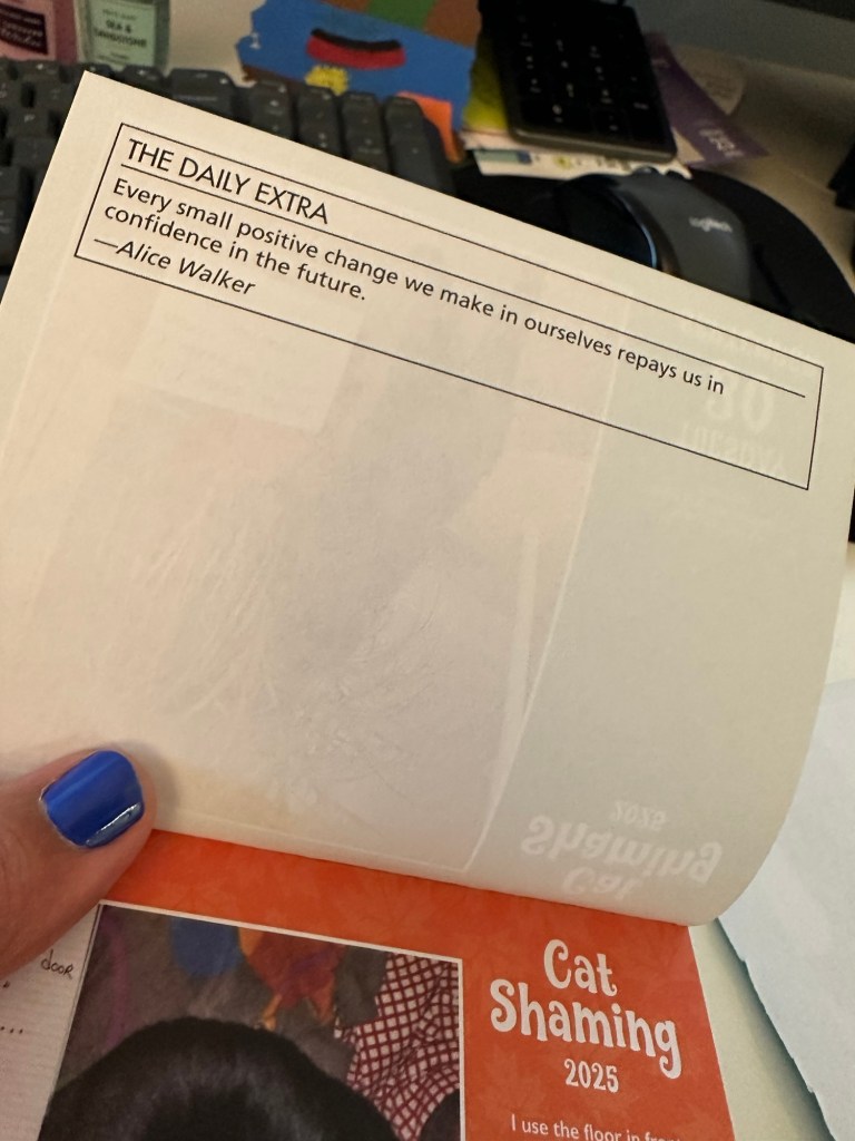 This is the actual quote on my daily cat shaming calendar today. How fitting that today’s prompt is on focusing on the important details in life.